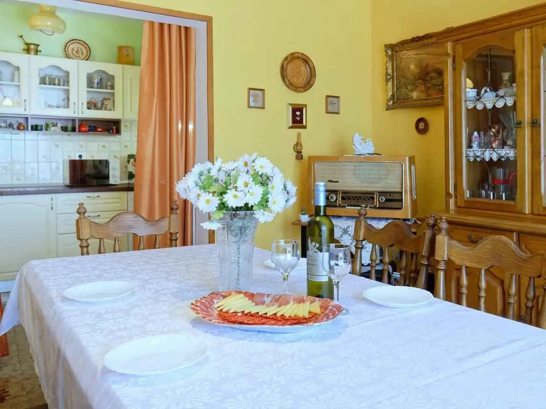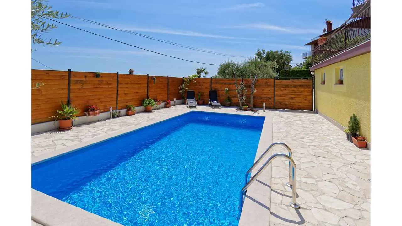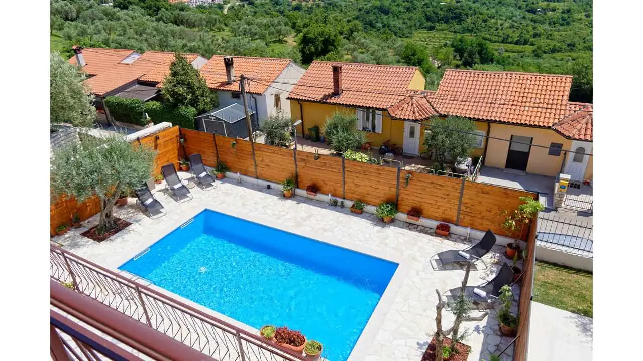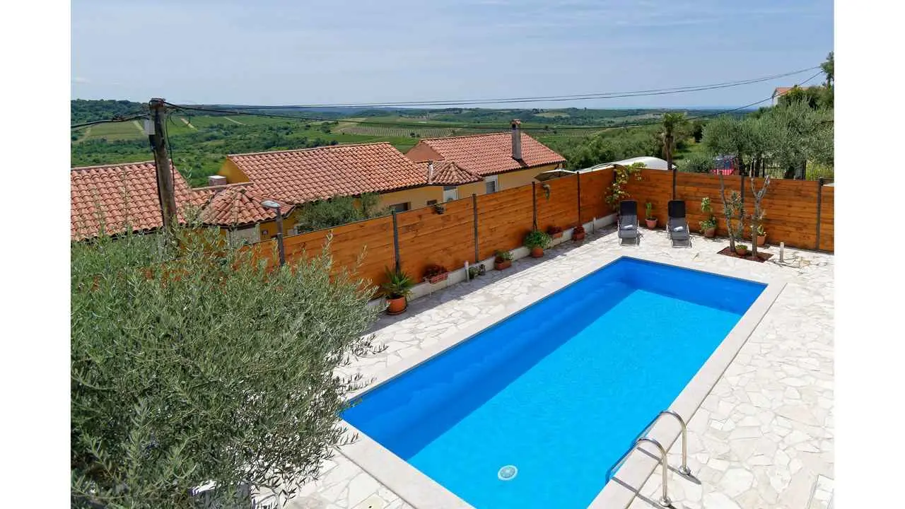 Cette propriété est une maison de vacances indépendante située au milieu du paisible village de Buje et est idéale pour tous ceux qui recherchent un peu de paix et de tranquillité. La maison de vacances peut accueillir jusqu'à 6+2 personnes. La taille de la maison est de 190 m2. La maison de vacances Vlady est répartie sur le rez-de-chaussée et l'étage supérieur. Au rez-de-chaussée, vous trouverez un salon, une cuisine entièrement équipée avec coin repas, une salle de bains, une terrasse avec coin repas et barbecue. À l'étage supérieur, il y a 5 chambres, une salle de bains et un balcon. L'espace extérieur comprend une piscine avec douche, des chaises longues et des parasols. Les clients ont à leur disposition un parking privé.